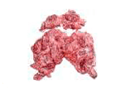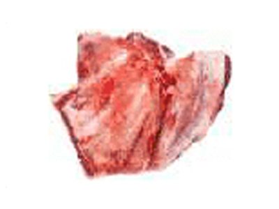 きめが粗く、かたくて筋っぽい部位。脂肪分が少なく赤みが多め、他の部位と混ぜてひき肉やこま切れにされています。エキス分も豊富、煮込みに。 -