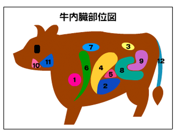 牛の4つの胃の中で一番大きく肉厚で繊毛が密生しています。通常売られているのは、第1胃のうち特に厚くなった「上ミノ」と呼ばれている部分。 -